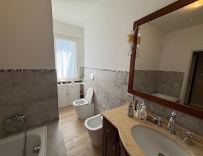 ZONA BANCA D'ITALIA Scopri questa splendida porzione di bifamiliare in vendita, situata nella tranquilla e verdeggiante zona di Banca d'Italia. Immersa in un contesto residenziale, questa casa offre un'esperienza di vita serena, lontana dal caos cittadino. Con una superficie di circa 420 mq, la proprietà si sviluppa su tre livelli, garantendo ampi spazi per ogni esigenza. Al piano terra, un accogliente soggiorno con zona pranzo e cucina, una camera da letto, un bagno e una lavanderia offrono il massimo comfort. Salendo al primo piano, troverai un luminoso soggiorno con cucina abitabile, due camere, uno studio, due bagni (uno con finestra) e un terrazzo vivibile, ideale per godere di momenti di relax all'aperto. Il secondo piano è dedicato al riposo, con tre camere da letto, un bagno, un ripostiglio e tre terrazzi che regalano una vista panoramica mozzafiato. La ristrutturazione completa del primo e secondo piano nel 2020 ha portato a finiture di alta qualità, come i pavimenti in grès porcellanato effetto legno e infissi in PVC con triplo vetro. La casa è dotata di riscaldamento autonomo e aria condizionata, assicurando un comfort ottimale in ogni stagione. Con un garage di 26 mq e un giardino circostante di ben 3000 mq, questa proprietà è perfetta per chi cerca spazio e tranquillità. La proprietà ha 2 ingressi ognuno con proprio cancello Possibilità di divederla in 2 unità: un appartamento a piano terra di mq. 170 e l'altro al primo e seconco piano di mq. 250 Non perdere l'opportunità di vivere in questo angolo di paradiso!