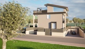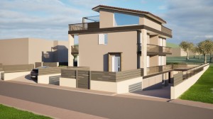 La struttura, realizzata in cemento armatao con cappotto esterno, è di mq. 160 oltre terrazzo e giardino; si sviluppa su 2 livelli ed è così composta: piano terra, ampia zona living con cucina a vista, bagno con finestra e lavanderia; piano primo, 2 camere di cui una con cabina armadio e bagno con finestra, secondo piano, ampia camera matrimoniale, bagno e splendido terrazzo panoramico di mq. 38